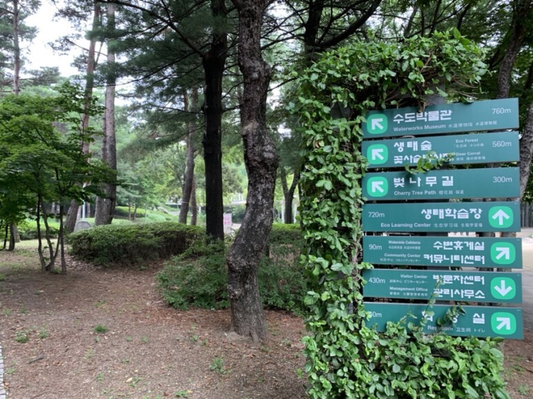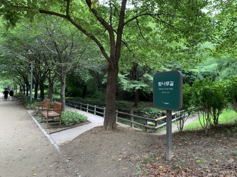 저 벚나무길 팻말까지 와야 볼 수 있어요