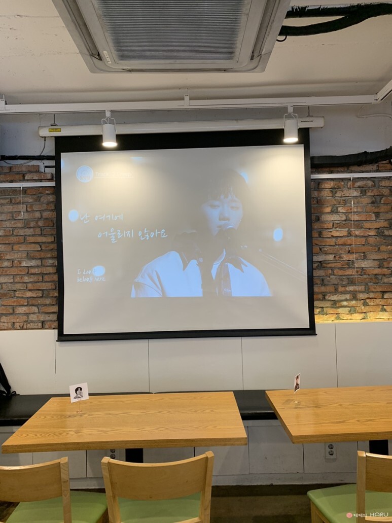 빔 프로젝트에 안걸리게 오른쪽 테이블에 앉았다