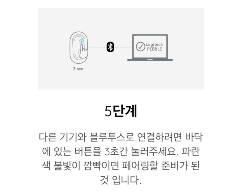페어링 버튼을 3초 동안 눌러서 파란색 불빛이
