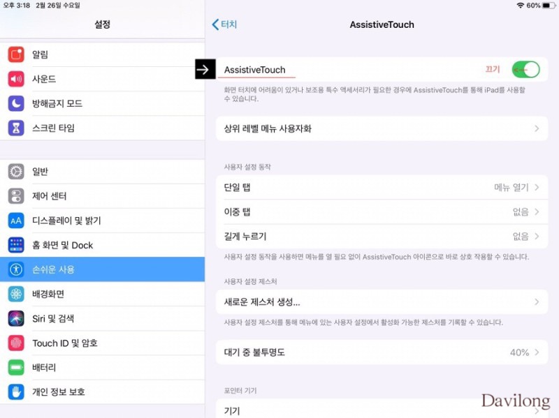아이폰/아이패드 기기에서 AssistiveTouch를 끄고 블루투스를 연결하고 난 후에 [설정 - 손쉬운 사용 - 터치 - AssistiveTouch 켬] 순으로 변경하면 돼요 ◡̈