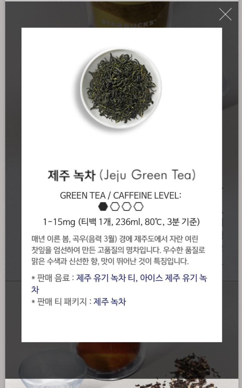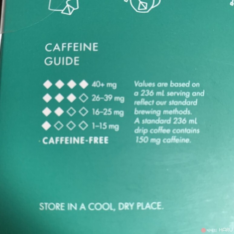 스타벅스 제주 녹차 상자에 카페인 레벨이 적혀있다녹차는 1단계 1-15mg 사이면 거의 없는거겠죠?
