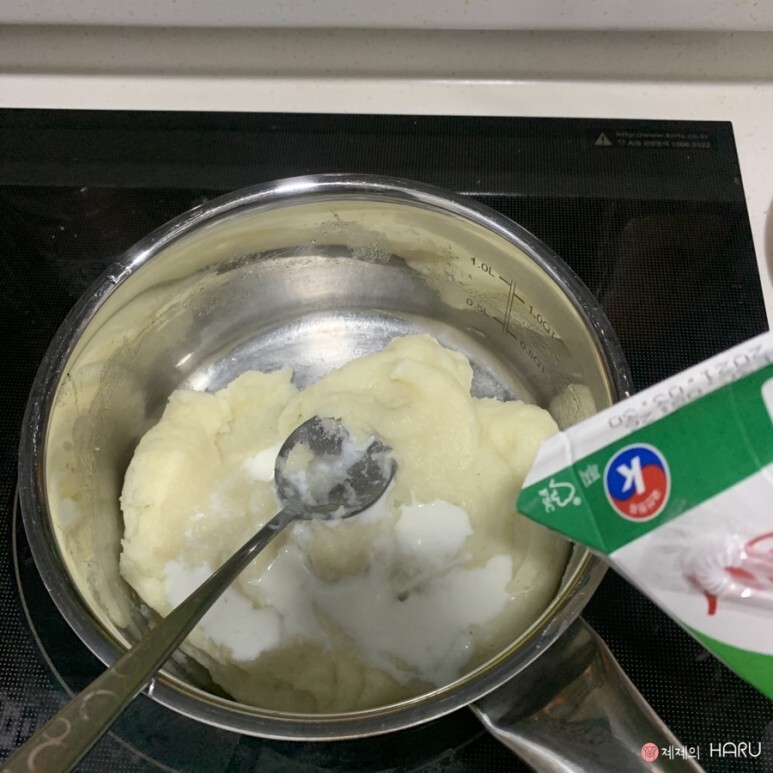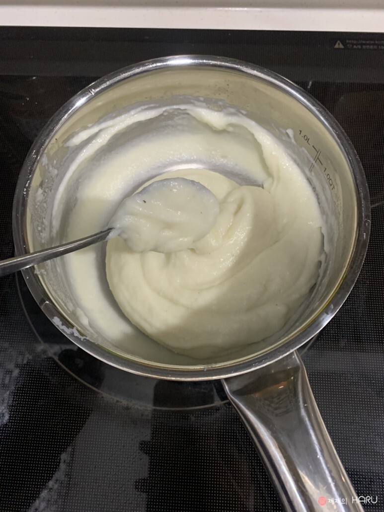 감자 크기에 따라 우유양을 조절해서 농도를 맞추면 돼요