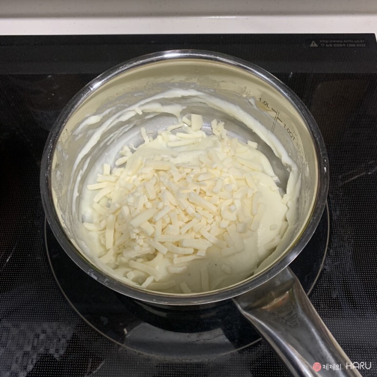 저는 냉장고에 치즈가 한팩뿐이라 한팩만 넣었어요
