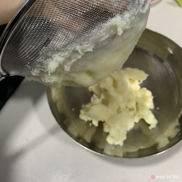 감자를 체에 갈면 쫀득쫀득하게 변해요