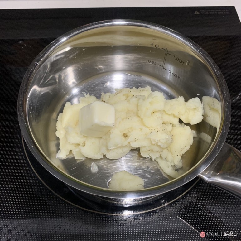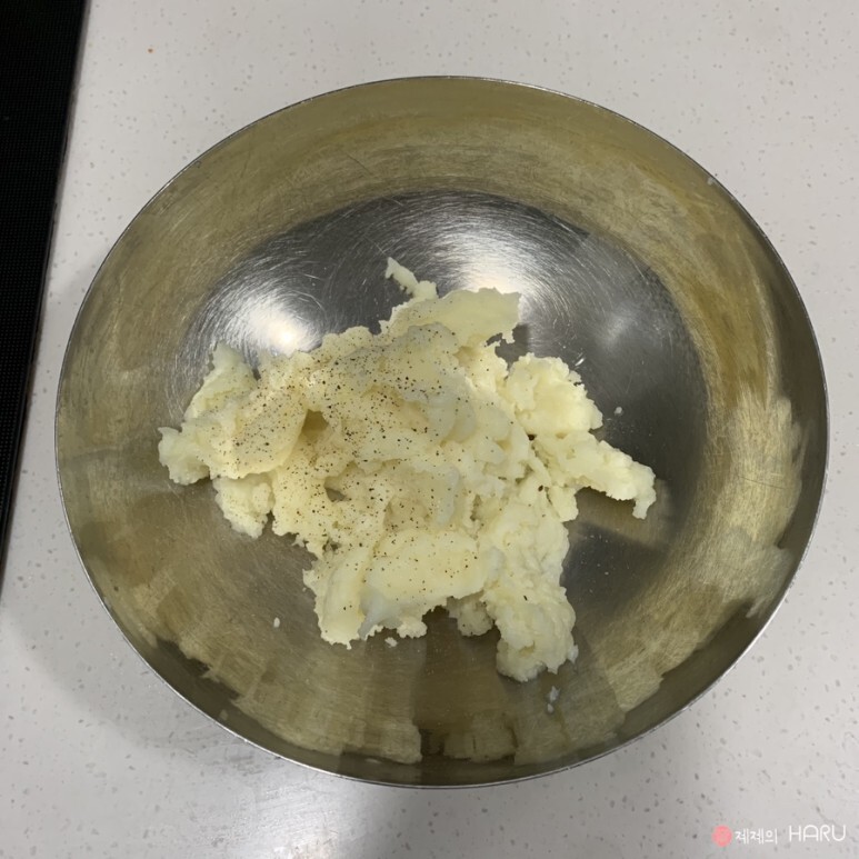 2. 감자에 후추 조금, 소금 한꼬집(생략 가능) 넣고