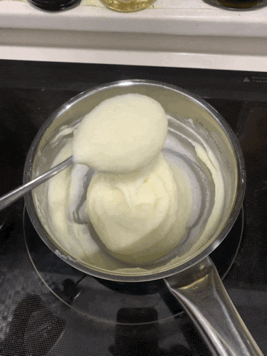 버터가 다 녹으면 우유를 넣고 늘러붙지 않도록