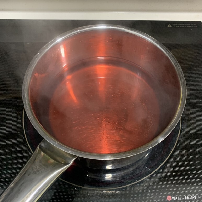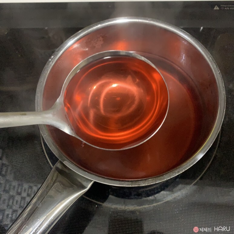 설탕이 다 녹으면 히비스커스 티백을 넣고 1분 더 끓여주세요