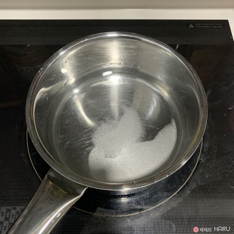 물 500ml, 설탕 250g을 넣고 끓여주세요
