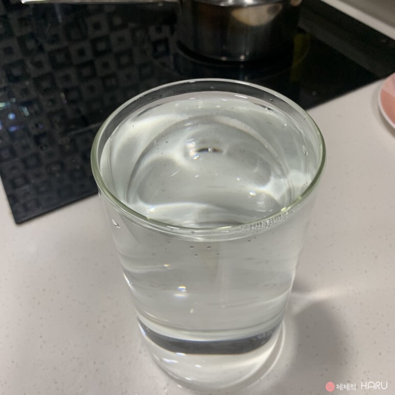 내열유리라 끓인 물을 넣고 5분 동안 방치했어요