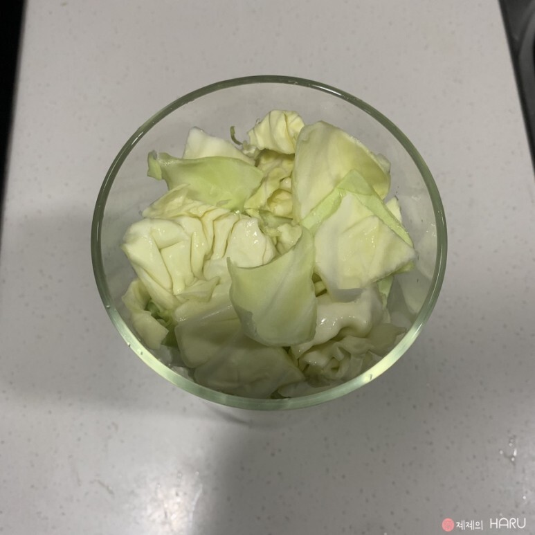 뭉쳐있는 양배추를 떼어낸 후 깨끗하게 씻고 물기를 빼줍니다