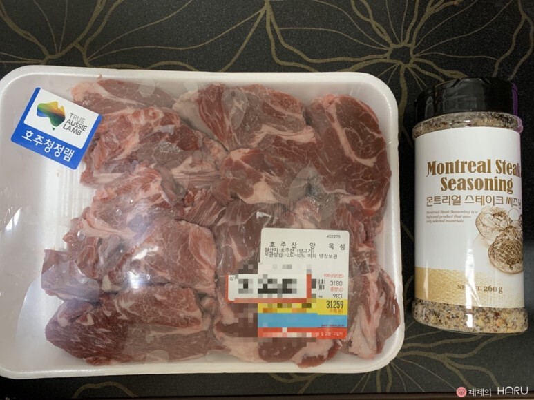 프렌치렉 사러 갔다가 새로 나온 양 목심을 발견했다. 양 목심은 처음 봐서 먹어보고 싶은 욕구가 샘솟아서 인터넷에 폭풍검색해봤다. 보통 양 목심으로 양꼬치나 찹스테이크로 먹는다는 정보를 얻고 양 목심과 몬트리얼 시즈닝 구매해서 집으로 돌아왔다