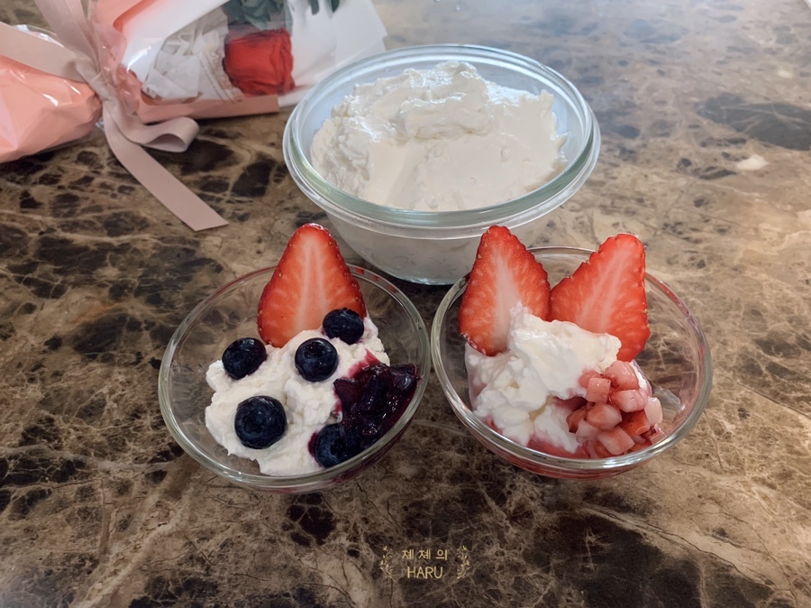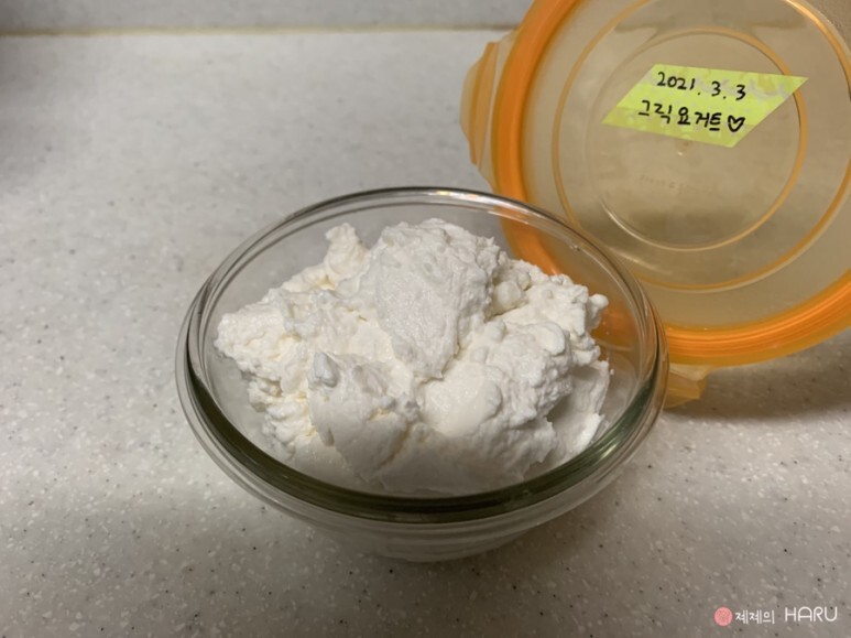 어쩔 수 없이 그릭요거트로 만들어서 먹었어요