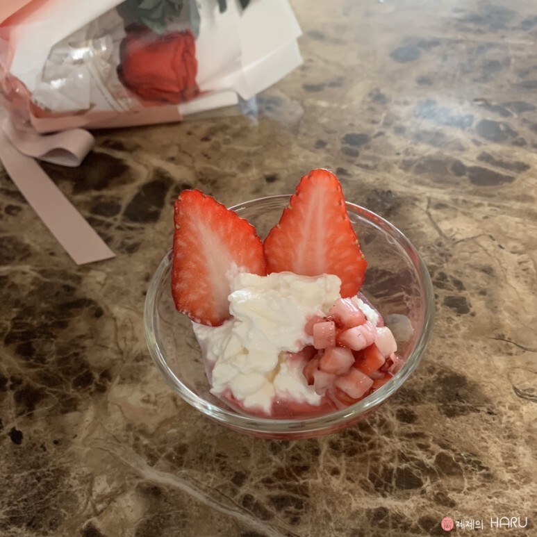 그릭요거트 새콤함에 딸기맛을 가려버려요딸기맛이 묻혀도 졸맛탱인긴해요