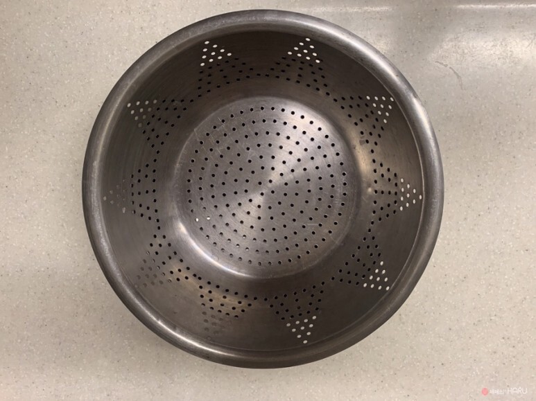 먼저 리빙볼 위에 채반을 두고 면포를 깔아주세요