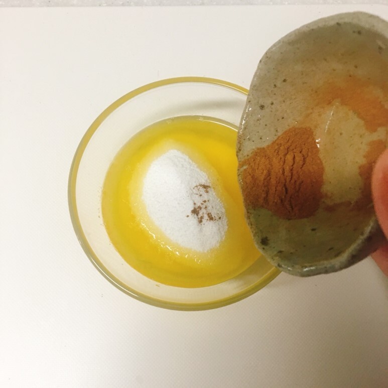 2. 녹은 버터에 설탕 4스푼과 시나몬 가루 1티스푼을 넣고 섞어주세요.