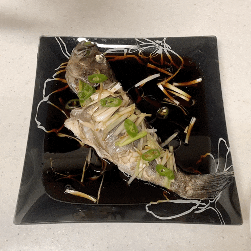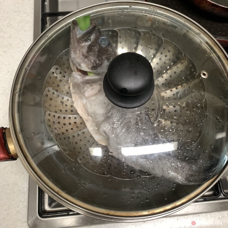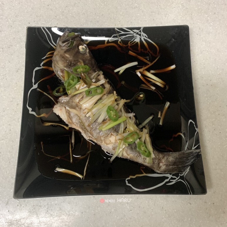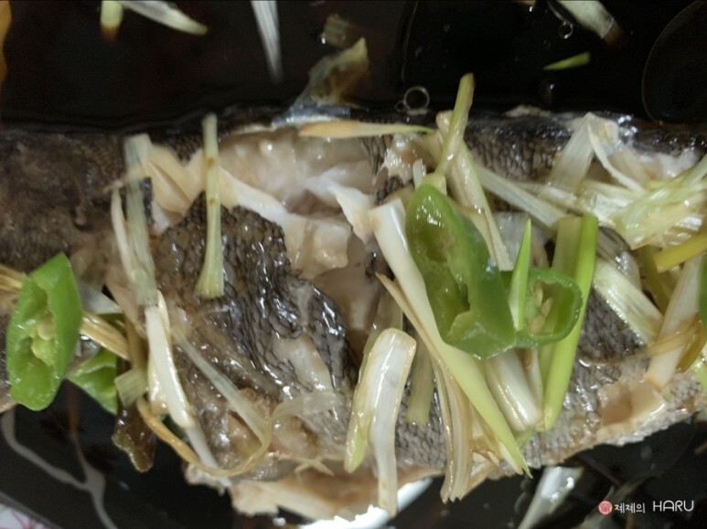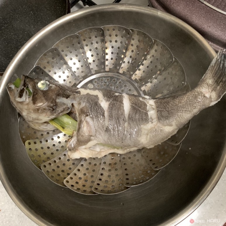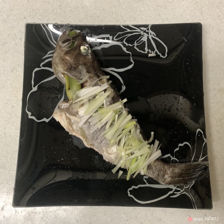 15분간 맛있게 쪄진 우럭에 대파 꽃단장을 해줘요