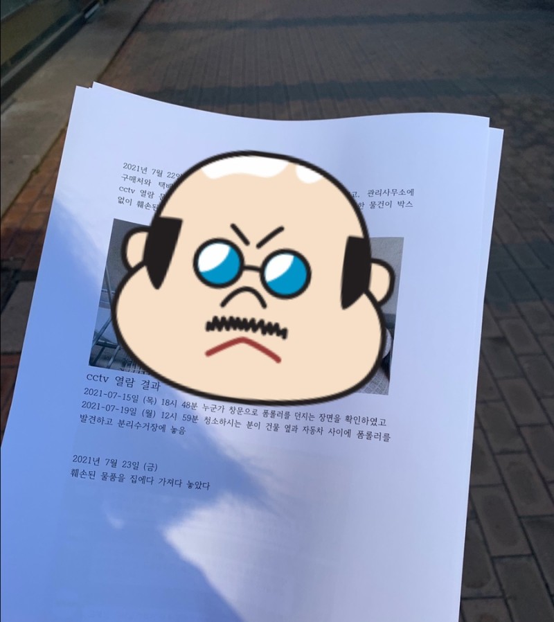 관리사무소에 연락해서 CCTV 확인해본 결과..