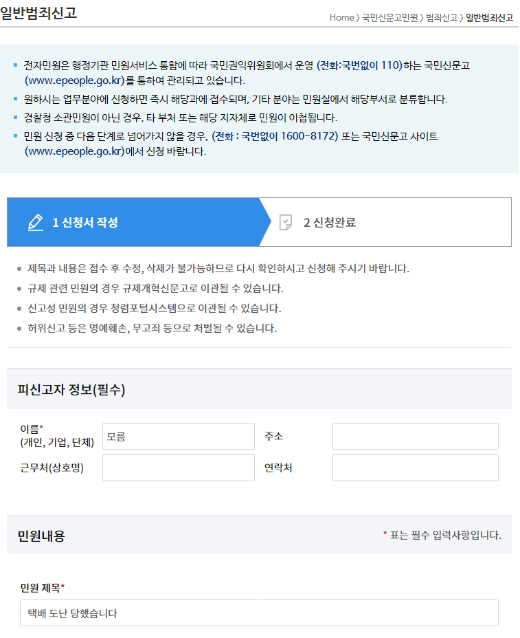 온라인 민원 접수나 경찰서 방문 접수해야한다는